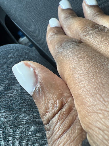 They also chopped my perfectly long nails off a separate time without asking and did a hack job of filing them. All were uneven in length and shape and I had to do them myself when I got home. Not only that, but they were all jagged and would catch on any fabric or material I touched.
