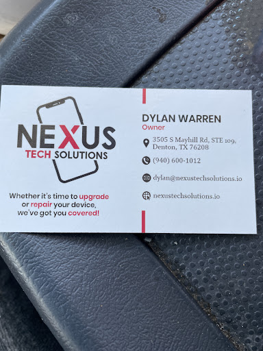 Ā Ā Ā Read moreMy husband passed away last month, his phone wasnāt charging and screen had popped up on the side. I took the phone to Nexus, the tech was confident and repaired the phone. The process was easy, they have excellent customer service, knowledgeable and followed up on the phone repair. I will definitely return and refer them. Huge shout out to the owner and gentleman at the front. Thank you both so much. I broke down in the parking lot when I was able to turn on my husbands phone. Truly appreciate the Nexus team...
