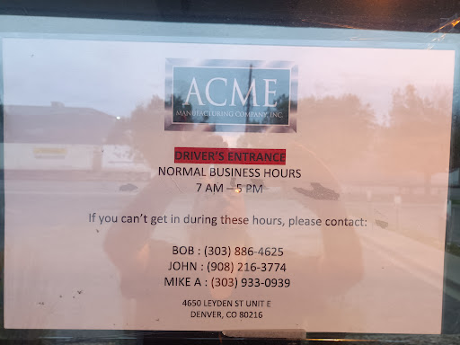 Read moreAs you may notice in the satellite view this is the other ACME Manufacturing Location, if your looking for the Leyden St. Location on the satellite view look for the building that says Hi-Tech RV that's were it is it's Easy to find : 4650 Leyden St. Suite E Denver CO. You will see the Drivers entrance, between dock 30 and 31, lots of trailers dropped on the street, if your lucky you may just find a spot to park. If you think your really lucky check the after-hours paperwork box on the wall. Here are the hours and a what to look for to know your at...