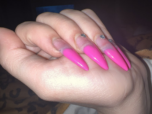 Read moreThis was my first time here. I came in with long holographic nails that were done 2 weeks ago at my regular salon. A friend recommended I check this place out. I asked for a holographic nail once again but slightly shorter. The woman started doing my nails and i tell her i want the point but not so pointed they're poking holes in my clothes. Clearly in the picture they are literally almost round. She starts allowing the holographic powder (which I've gotten for over a year every time at my other salon so i know this product well) and it looks beyond blotchy. Totally uneven glitter and color showing and then tells me oh it does this that's fine right?! NO THAT'S NOT FINE! Then after the 2nd attempt they send me to another lady who once again doesn't do it right. Now I'm left with nails I have that are not the color i wanted, not shaped right at all, and not even done well! She didn't even bring the acrulic up to my cuticle there's space like I've let then grow out for a week. I honestly want my money back and ahould have just walked out. Waste of my morning, money, energy, and now i have to go out of town with these ugly nails. I highly recommend if you have any type of decent standards for your nails that you STAY FAR...