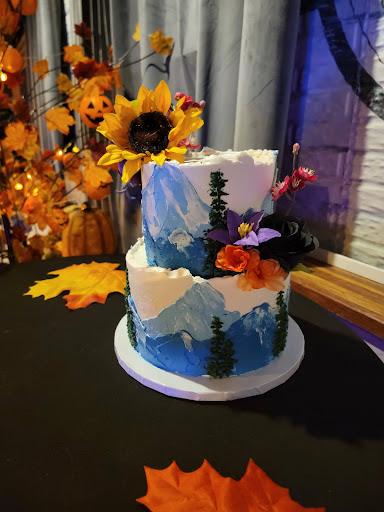 Our Pastry Artist went above and beyond to make our vision a reality. We had tried several different cakes but nothing compares to this pastry chef's flavor combinations. We had an intimate cake tasting with my now husband and myself. We knew we loved this artists work from the website, and after that first bite we were sold. We just had to decide which flavors we loved the most! We were able to really taste and appreciate the flavors and truly pick our favorites in our own home as a stay in date night. We chose a two tier cake with two different specialty flavor combinations. We were lucky that she was so receptive and made my Pinterest board vision a reality. From the tasting, meeting for the flowers and finally Cake Delivery everything was above and beyond. Everything was above and beyond amazing, we were so lucky to have them as a part of our team for our wedding. I had several favorites and requested color for the fall mountains. The pastry chef provided specific instructions that were followed to a T. Thank you so much for adding to the magical vibes of our Wedding Reception. We had a Summer into Fall themed wedding in the mountains with a reception that included a Halloween theme. The flowers on top were silk flowers from my bouquet. The cake flavors we chose were Fall In Love; Pumpkin Spice cake with pecan pie filling, browned butter cream cheese frosting, and salted caramel. For the top tier Strawberry Lemon; Strawberry cake with tangy lemon curd filling and cream cheese frosting. Perfectly made and perfect...