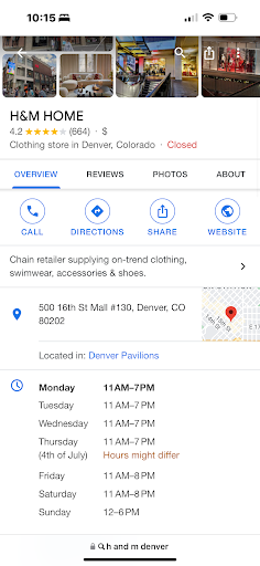 Read moreHave lived in Denver for 5 years. For 5 years I’ve been popping in and out of this location to shop for clothes and for 5 years I have sifted through a literal overstock of tiny clothes (shirts all size S & M) (pants 30” & 32”), nothing larger. I’ve never experienced this in any other location. So H&M on 16th Street Mall, why do you hate big people? Why don’t you want us to shop in your stores? I’m having trouble understanding why a store that prides itself in inclusion and diversity in society would discriminate against certain body types. This sends a very elitist message to the public and it’s bad for your own reputation. Lose the snarky attitude, gets some size LARGE and XLARGE and god forbid a pair of pants larger than 32” waist. I don’t know who’s running the show there but they must really hate fat...