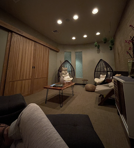 They start you with lemongrass tea infused with ginger (which I'm now addicted to and must figure out how to make) and Malaysian cookies (which I can't even describe because they're not sweet like you think a cookie would be). They paired perfectly together. Once you've taken your time enjoying that delicate little treat, you are whisked away to enjoy your foot bath with lavender cleansing salts. You control the water so you can choose a temperature that is most comfortable for you. Once you're to the point where you're so relaxed, you think you may fall asleep, you can make your way to the relaxation room. Several chairs and lounge seating with pillows, blankets (yes, plush blankets for if you do want to nap afterward), a zen garden, and tiny waterfall. From here, you will be fetched for your treatment, but not before taking some deep breathes of calming lavender aromatherapy first....in case you weren't already borderline sleepwalking. After your treatment, you will stop for an awakening lemongrass aromatherapy and warm date tea on your way back to the relaxation room. It is here that you can listen to a guided meditation or try to mentally come to terms with having to go back into the real world.