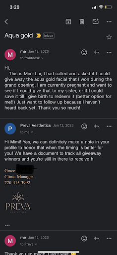 Read moreBeware of Preva Aesthetics. Go somewhere else…there are lots of trustworthy places in Denver. From my experiences this is not one of them.