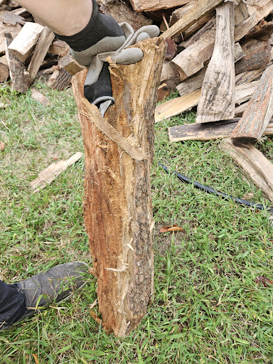 Nick's delivers firewood by the cord, and their prices are similar to others in the area. Also similar to others, a lot of their wood is unusable without further processing. In other words, a lot of the wood is cut so long or so thick, or both, that you have to re-split about 75% of it in order to use it in virtually any wood-burning appliance other than a bonfire. I've included a photo of one of the pieces which is easily over 3 feet long and maybe 25 inches around. That piece will have to be split and cut length-wise in order to fit in our stove or firepit.