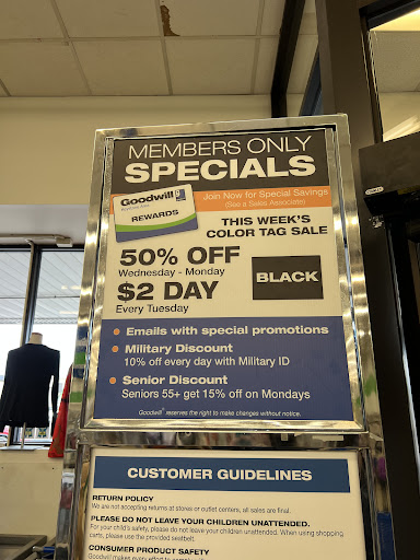 Read moreMy husband had to go to Lewistown for work so I tagged along and decided to check out some local shops. I thought this Goodwill was great! It's organized by color, just like every other one I've been to. It is a pretty decent size, so there's a lot of merchandise to peruse...which means lots of treasures to be discovered đ The staff was very friendly and helpful. I LOVE that they have gone bagless to do their part for our planet. So, take your own bags, or plan on buying a tote if you purchase more than you can carry. A few of the items may have been priced a little higher then I was willing to pay, but the majority was right on target. I checked out with a cart full of goodies! If you enjoy thrift shopping, I highly recommend stopping here! I'll definitely go back when in the area...