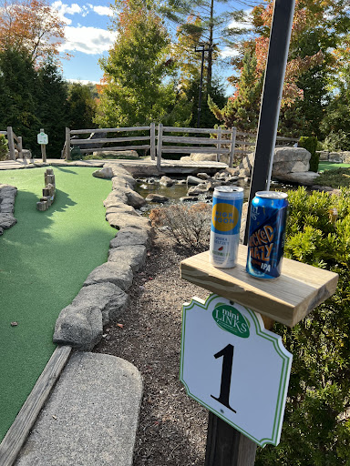 Paying for mini golf was ridiculous. Went into cafe to pay and stood where you get the clubs and balls for 10 or so minutes. Finally a nice older gentleman came and gave me the balls and clubs. Said someone called out and to pay in coffee/food line. That line was crazy with just 1 person working preparing all the fancy, take forever to make coffees. Waited another 8 or so minutes. Finally paid. Lots of other staff just walking around. I guess they don't know how to ring up mini golf? Maybe they don't care as mini golf isn't the money maker? Should have been a much quicker transaction overall. The course was ok. Decent challenge but leaves and debris all...