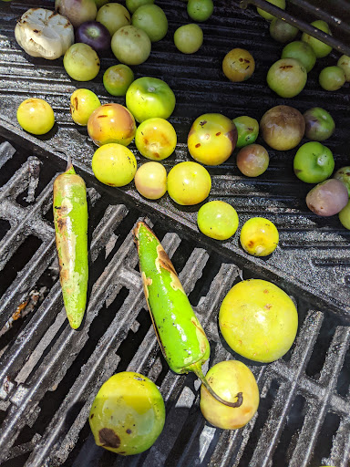 We bought tiny tomatillos, some of which were purple that we'd never seen before, a huge slab of beef jerky/carne seca and peanuts. They were out of medjool dates, but they will have more next week. I wanted dates, and we were going to come back here, anyway. The woman was so...