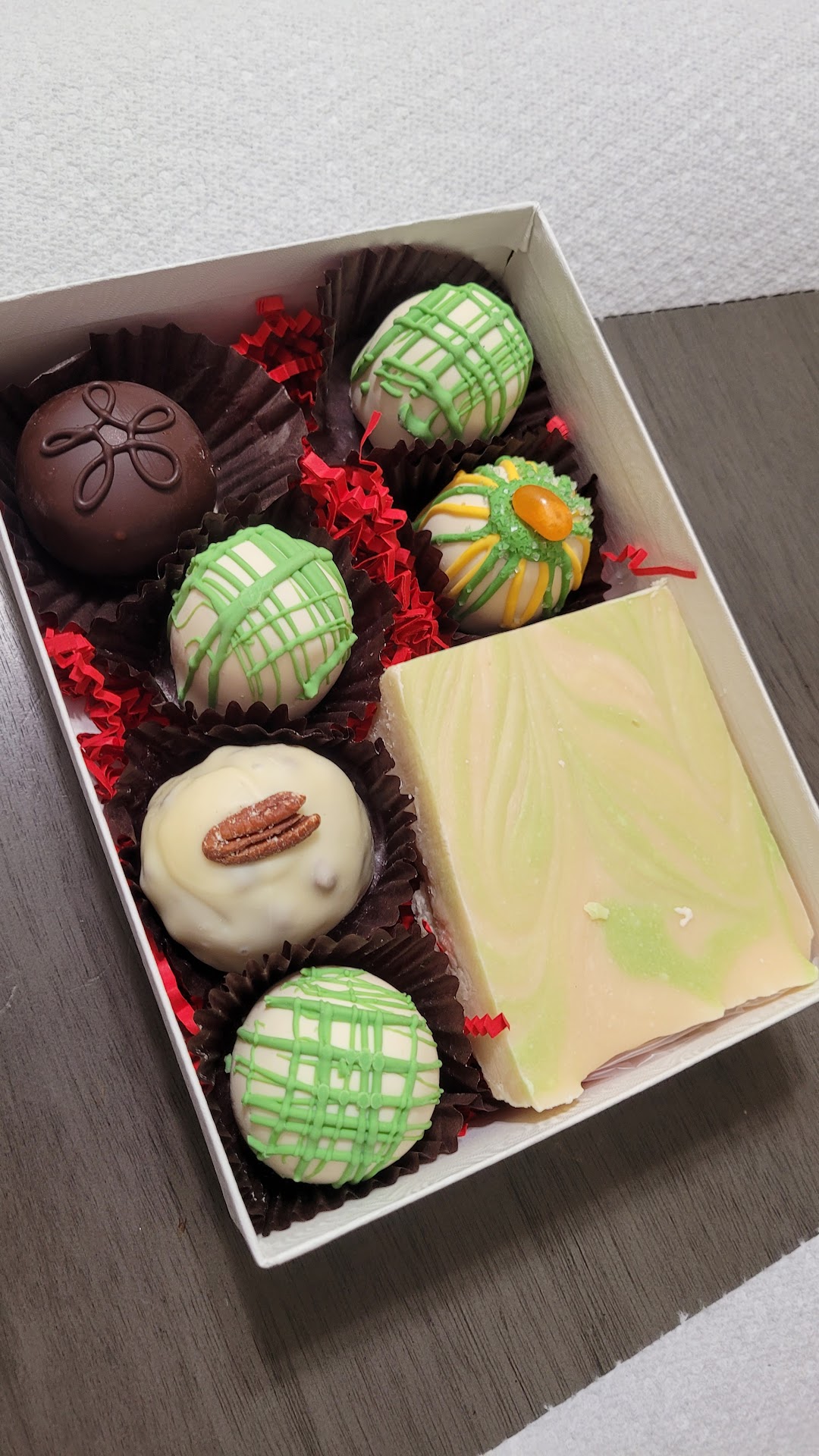 So their chocolate covered apples are delicious! But wasn't very happy with the customer service from the owners- or the absence of.