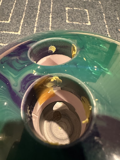 I tried another of their driller Eddie out since John recommended him. I brought a ball for them to copy the layout. The layout came out sort of the same but not exact. I did bowl well with it so no big deal but it's not what I asked for. Pic attached. Pin is less than 1" from drilled fingers so voids warranty. What I asked to copy (night road) 5 x 4 x 2 1/4. What I got (road) 4 5/8 x 4 1/4 x 2 3/4