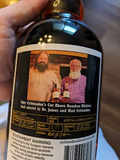 Read moreMatt Crittenden and his family run this distillery in Kiln Ms. It's just off I-10 and easy to find. They make some great whiskey Monday thru Friday but can't sell bottles before 10am and usually wrap up the day around 3. They do offer tastings of most of their recent creations. Kiln has been known for years for the whiskey making but Matt does it legally (IYKYK). Stop by...