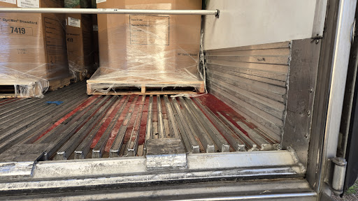 Front to back this is what my floor looked like and I have a heavy duty duct floor nearly 3 inches deep. That is the blood draining out of the boxes then freezing in the trailer. 26° degree load