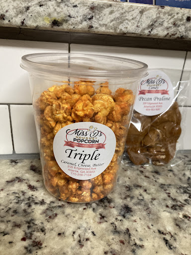 Read moreTop of the line candies and popcorn! My sister is visiting from Florida and we were so happy to be able to visit Miss D's Pralines & Popcorn in Douglasville, GA. From the moment we arrived inside the smells of deliciousness was in the air, fresh made goodies were everywhere! A really nice woman greeted us and we found out she was actually The Miss D!! We sampled Praline Pecan Candy and also Triple Popcorn (Cheddar,Caramel and Butter). They were so delicious, out of this world amazing ! Then we bought several different flavored Popcorns and she was so very kind ,welcoming, professional , helpful and we left there feeling so special and happy! Please go...