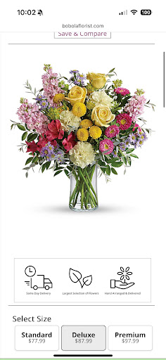 Read moreFlowers are okay, but don’t expect them to look anything like the online photo. I know that the arrangements may not be exactly the same due to flower availability, but it should be equivalent and in the same style. I ordered what looked like a beautiful unique and modern arrangement, and my mother received something that looks like any arrangement you could pick up at the grocery store. I upgraded to deluxe as well. They don’t have an email or contact form on their site, so I attempted to contact them via FB messenger, and though I received an automatic reply thanking me for my message, they never bothered to actually reply. I don’t have time to sit on the...
