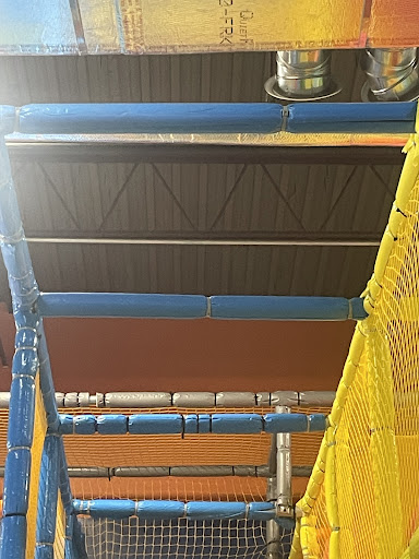 Lack of netting above equipment. All major overhead areas of an indoor playground need to have fire and rip resistant netting to keep children from climbing over the sides of the equipment and suffering injury and death from a fall. Flyover park has a lack of this netting in any of their equipment that is above ten feet high. This is a direct violation of the ASTM industry standards, the group who licenses indoor playgrounds such as "Flyover Fun Park". Attached photos show the lack of netting where it needs to be.
