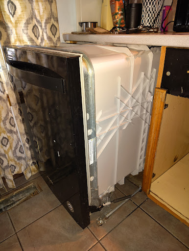 The pictures are of the old dishwasher sitting in the middle of my...