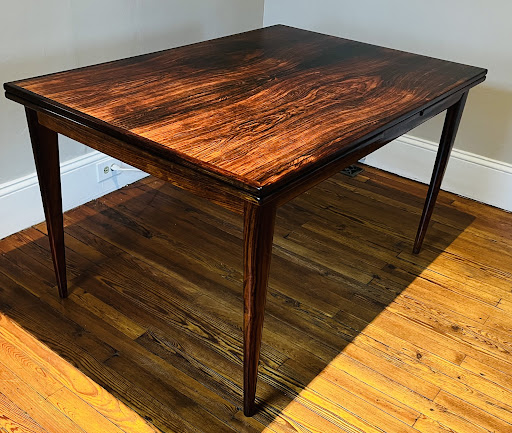 One glance into Form and Matter Modern's shop windows and you will be hooked. Sam Floyd keeps his store pristine and from the start, it is clear this man loves what he does. Sam lights up while answering questions and enjoys getting to know his customers. He is an expert on mid-century wood furnishings and his restorations are to die for. All of that, and his prices are reasonable! My husband and I have been looking for the perfect dining room table for years and the moment we walked into Form and Matter and met Sam, we knew we would be buying here. We found a gorgeous Niels Moller table. The rosewood gleams in our dining room! Sam even offers to go the extra mile to hand deliver his pieces and carefully explains how to care for them. Next up, chairs. We will only trust Sam to find...