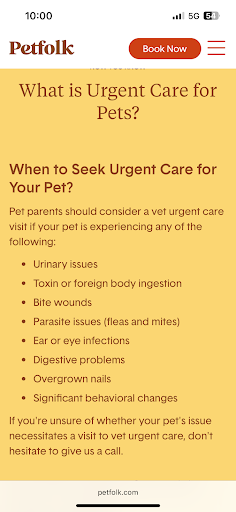 When I asked if they were truly an urgent care facility, the technician said yes—but only with an appointment and they did not accept walk-ins. She also told me that my dog’s condition was “not urgent,” and explained that only “death-related” or respiratory issues count as urgent in their eyes. This directly contradicts what they advertise. She did eventually offer a 10:30 appointment, but that was still an hour and a half away, and I was not comfortable making my dog wait while actively bleeding and in pain.