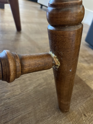 BROKEN KITCHEN CHAIR PROVIDED TO CHAIRMAN REPAIRED CHAIR RETURNED TO CUSTOMER See below pictures