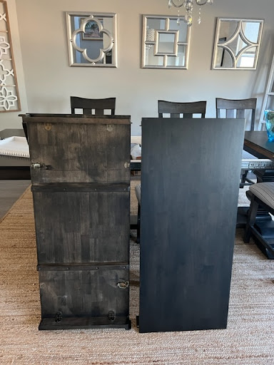 I ordered a dining set from this store in January 2021, finally received it over 5.5 months later. It is not the color I ordered, which I advised the store of immediately. They told me there was nothing they could do, it would be too difficult to redo the table, and that I should call a furniture refinisher to change the color. They also stated it was just a "variation in the stain". I can assure you this is not the case as you will see in the pictures. I spoke with them multiple times, and still got the same answer. I went to the store to show them what I had discovered recently, which is the color on the backside of the insert. This color is "close" to the sample color I chose in the store. They still refused to stand by their mistake after agreeing that the color is way off, and told me they let the stain professional go recently. They offered to PAINT the bottom white and lighten the solid dark espresso/black top "a bit". Obviously the stain professional made a mistake, tried to cover it by adding multiple coats, hence the dark (espresso/black) color. Very upset and disappointed!!! I do NOT recommend this business. The picture on the right-I am holding the sample in my hand in the store. The picture on the left-my table inserts-one is backside (lt) other is top of table (rt)-not even close...