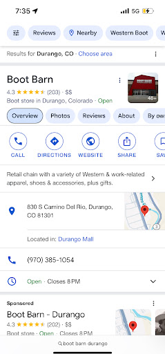 Read moreThis place is arguably the best clothing retailer from here to Sante Fe. The selection is spot on for the diverse demographic in the region and the lay out is very comfortable, appealing and very well thought out. The primary staff (both managers and their immediate support) are phenomenal with a professionalism matching a doctors office in addition to having charming personalities. They have been most helpful while picking out $1k+ worth of clothing and boots which was not always strait forward on their end requiring advanced ordering and return procedure in addition to patience. I feel that by using my Boot Barn rewards card, receiving points with my purchases then paying it off I received the very best value for my money spent. I will be referring all friends and family to this and all other Boot...