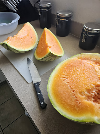 This time we got a cantaloupe and some plums