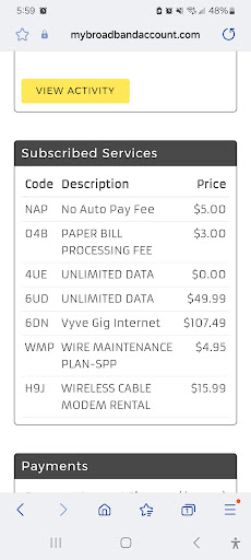 Read moreVyve is ok. They are decent internet service. We have had issues since the start. When we first signed up, we had to cancel because the internet would be kicked off of all our devices. They said they couldn't figure out why. When we tried again, they waived the fee to install and everything was fine after that. Recently we moved. We needed to have vyve come and run a line and set us up for the new house. The tech that came out kept saying he couldn't find the wires. They were there. My husband had to come home from work and show him. Because this tech was trying to upcharge. Saying he could drill through the external wall or doing something more simple. Drilling would have been around $300 something. He didn't like the more simple option which was drop line down. Which he didn't have to do because it was already there. It's pretty sad that my husband had to come home and show him. Then we notice our bill goes up and we have a transfer fee charge. Which we think is ridiculous. You'll install new customers for free but not your existing customers when they move. Especially when the internet line is still laying in the backyard and alley way just open. No one ever came back to cover it. It's been since June. It's now August. We will be switching to dobson. Not only do they have fiber. They are cheaper and much more professional than vyve has ever been.
