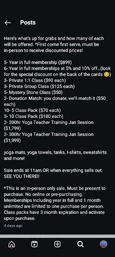 I was asked if I'd been here before, to which I responded that I'd been to the Raleigh center. To this, the instructor said, you're not supposed to do that, i.e., use the introductory 2 week offer. I then further explained that my Raleigh visit was using a friend's guest pass. All he needed to do was say something along the lines of Oh I'm sorry. I found him to be needlessly rude. First, even if let's say I had taken the intro membership at a different location (which I hadn't), the onus is on the business website to not let such customers purchase another intro pass. As opposed to the expectation that we're "not supposed to do that". Second, he could have either withheld making an accusation with limited info, or said a quick sorry. It goes a long way. I thought he might realize his mistake on his own later, so I thanked him as I was leaving after the class, hoping he would say something or at least ask how my first class was, and I would have brought up what happened, but none of that. I might just drive the extra 20 minutes to the Raleigh center instead, though I may try a few more classes at Durham to see if this experience balances out with other instructors. The pilates class was good!