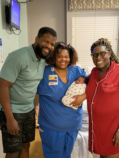 By the time the morning crew came in it was go time. Our nurse, Emma was so energetic and bubbly. Our midwife, Lakasha introduced herself and talked us through whats to come next. We were cautioned of complications as our baby was expected to be bigger. Delivery started and progressed rather quickly, but unfortunately that complication did occur. I was beyond impressed with how calm but efficiently Lakasha led the team. Des and Emma immediately intervened and got into position to ensure my baby safely entered this world. This part happened so fast, but could have ended entirely opposite. Everyone remained so calm while also optimizing our baby's safety. Our delivery was all of 40 mins, we recovered and were moved to Postpartum care in the next few hours.