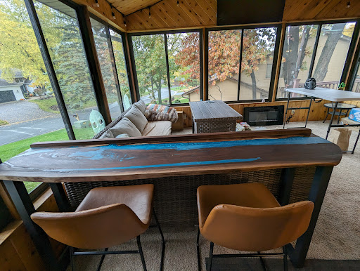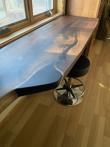 Read moreBen created a beautiful custom desk for my home office. The depth at one end of the wall was very narrow, so Ben found a slab of wood that provided enough workspace at one end to create a functional desk space, while making the narrow end usable as well. In all, it's more than 10 feet of work space. The curved epoxy work is stunning. The only problem is that it's so beautiful, I don't want to put anything on it! ...