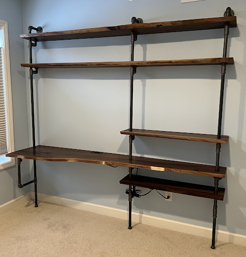 Read moreWe ordered a custom desk and shelving unit. It's made with live edge black walnut and industrial piping. We couldn’t be happier with their outstanding piece!