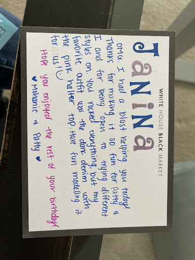 Read moreI want to thank Mohanie & Patty for a fantastic visit on 2/20/2022. I’m from out of town and I was visiting my girlfriends. It was my birthday and Patty’s and it was a fun atmosphere celebrating by shopping. Mohanie and Patty took their time with me, were very helpful in picking out new styles, & gave honest opinions on what looked great and what needed to change. I actually learned so much about what works better on me - thank you, Mohanie! After purchasing a new spring wardrobe, they shipped my items & sent the nicest thank you card. I’ve had similar experiences in Holland & Grand Rapids, MI with manager, Onuma…which have been wonderful. WHBM really knows how to treat their customers & I am blown away by the CARE they put into treating them. Thank you ALL for making me feel & look like a...