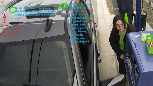On Tuesday I went through the wash and checked afterwards to find identical damage on the opposite side. Same spot on the other side, just a mirror image of the first, so clearly their wash mechanisms are not properly calibrated for all new vehicles and applied too much pressure. I spoke to the manager the next morning and she tried sending a photo of my truck with a random shadow noted in a completely different area saying it was already there. This is their supposed video evidence which is one still frame of the entire video they won't provide. The only pre-existing damage was on the opposite side which they caused as well but conveniently couldn't provide video for since their "servers got updated" at the perfect time. I advised her that the photo in fact shows there was no damage where it actually is and she had just marked a random reflection. I also have time stamped video leaving my home 10 minutes prior showing this damage was not there.