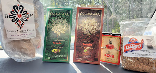 They make pierogi and kielbasa coins fresh and hot in store with one table for eating. Or you can purchase frozen pierogi to take home and enjoy. We did both. Also grabbed some hot paprika, terravita chocolate bars and whole caraway seeds for later.