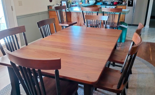 I had been checking out George's Furniture at local shows around the DC area for several years before I was ready to bite the bullet. Money had been tight, but I had been saving up and really wanted a quality dining room set that would grow with my expanding family. My children were out the house and getting married, so I knew a needed a larger table for my small house. I commissioned a table with 8 chairs and 6 leaves that I could add in as needed. I also ordered the cabinet to store the leaves safely. One of the bonus' of ordering from George's was that I was able to choose the width of table I needed. My house is not large and would not fit a 60-inch...or even a 48-inch width and still leave room to walk around it. I was able to order a table that is only 42 inches wide, which is perfect for my house. I have been keeping 2 leaves in the table, providing a length of 7 feet; but can easily add more length when needed. The table and leaf cabinet are beautifully crafted and I have loved them since they arrived several years ago, now. I have no regrets. I recommend checking out George's Furniture if you are tired of buying pieces that just fall apart. I expect that I was be handing down my pieces to one of my kids one day. Thank you, George, for the wonderful craftsmanship and the beautiful furniture that I am...