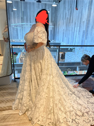 This review wouldn’t be complete without my compliments to how beautiful the bridal salon is in itself (as well as the rest of Anthropologie!). The dressing rooms are divided in a way that everyone has their own area and it does not feel like you are on display to the rest of the store. It has every charming and whimsical touch of Anthropologie and a gorgeous display of head pieces, veils, jewelry, and shoes to help bring your vision together. Everyone was so friendly and made you feel as special as you should when you’re choosing your wedding dress. We each popped a can of complimentary celebratory champagne at the end of our appointment once I said yes to the dress and I could not have asked for a more...