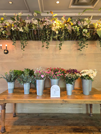 I had seen a beautiful flower cart (with a chandelier) reminiscent of the flower carts in Paris at The Atrium. Allison referred me to Brenda Stewart of Proparazzi Photobooths (@proparazzi_photobooths), a preferred vendor. Thru Brenda, we booked the flower cart, a gorgeous flower wall with props + custom signs, and a beautiful balloon arrangement made by Briana (@brianarene_luxevents) (separate review on them – they were fabulous). The flower cart served as a flower bar, w/ flowers supplied by our favorite local flower farmer Dawn Zimmerman (@ethyls_backyard). Guests selected flowers + bouquets were made by Vanessa Gagliotti (@cethosiafloral). They also did the florals for the tables.