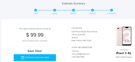 I was quoted $99.99 which was expensive but I had dealt with wireless charging for awhile and wanted to be able to plug my phone in. I was told the turnaround time for the repair would be 1-1.5 hours.