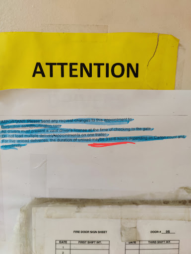 The entrance is on delanco street for trucks. There is space for about 6-7 trucks for overnight parking just before the entrance of facility. But they wont let u do overnight parking inside the facility. Even for delivery you should have a appointment number with u which starts with 200. After check in at gate go straight to door 9s for receiving. They have a washroom there. They'll assign u a door. Usually takes about 2-3 hrs...
