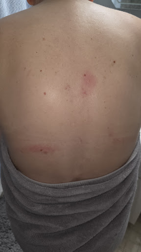 After I got home, I checked my back and wiped the areas where I felt discomfort with an alcohol pad. There was no blood, but it did sting slightly where I had felt the scratch sensation.