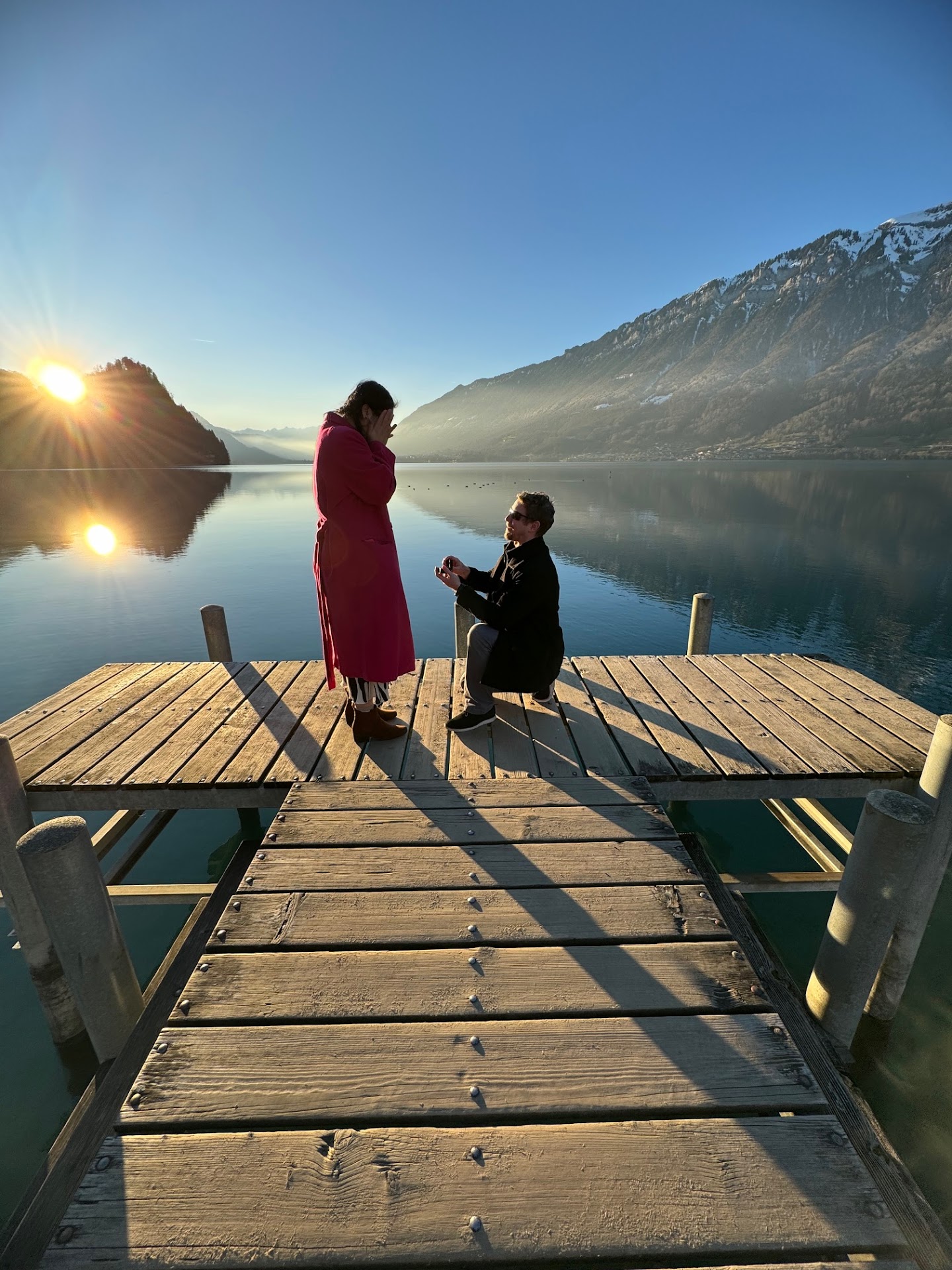 My significant other "knew" something was up, but obliged my secretiveness. I managed to keep the ring hidden until we got to the dock at Lake Brienz where our favorite K-drama, Crash Landing On You, filmed that famous dock scene where he played the piano (if you know, you know).
