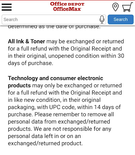 Tried returning defective laptop with receipt in new condition and Manager said he did not have enough cash. How do you not have enough cash at 5pm for a $260 laptop return. He then said he could put the money on a credit card or send me a check. I refused to give him my credit card as I paid in cash. He then opens register and pulls out the magical cash he claimed he never had. He then lectures me about returning on the 14th day, how a $260 laptop is basically useless despite having no problems with a $200 laptop in the past. Then he asks how much speed does my internet get. I say 10 Mbps and he laughs and says no wonder it freezes on you, that's like dial up speed. Then he goes on about how he has 30 Mbps. 10 Mbps is no where near dial up and is actually a pretty fast speed. I've played call of duty on 2 Mbps so he's obviously not very educated on internet speeds. He gives me my money without counting it and I leave. I count it outside to make sure and what do you know. He shorted me a $20 bill. I go back inside and he goes to the safe to retrieve it and says next time you should pay with a card instead of cash. Excuse me for thinking a large brand name store would have $270 on hand for a return. I feel sorry for the kid who rang me up. He was trying so hard to make my return smooth and the Manager ruined everything. That other review about the laptop return must be true. Stay far away from this and any other office Max., unless you like being degraded, humiliated...