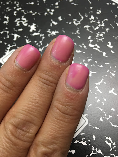 Read moreI used to like this place, but I won’t be going back. I went in for OPI’s Bubble Bath and the nail tech kept showing me samples and didn’t know the Bubble Bath so I decided to just select a color similar to it. The brand was so weird and looked cheap. The color then started pulling away from my nails and she just kept adding and adding. Other nail techs came to comment and she just kept adding it. Finally, I had to stop her and ask for another color. She got very upset and stared scrubbing the gel off. She told me that it was because my hands were so dry. The nail tech next to her said it was because the color was too light. I’ve had OPI’s pale Bubble Bath before so I don’t know who to believe. I selected a darker pink and it went on well. Unfortunately, 2 days later the top coat has gotten cloudy and you no longer really see the original pink. It’s disgusting. I will never go back to this place. I would rather pay more at Sapphire Nails on 10th where I know they do a good job that lasts. Oh, and thank you for sanding my nails down to the point that they will break when I remove this paint...