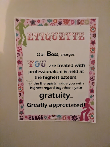 I've been an LMT since 2005, I absolutely loved the massage I received here. It is a bit more like getting one in another country. I also enjoy Thai massage, this was nothing like that. My 2 complaints, 1 would be the service interruptions because they do not have a dedicated front desk person. This is also common in other countries. AND the use of the same technique of massage. I felt that the roll and fold form of petrissage on the spine could have been mixed up a bit. In other words, it was the same motion a lot. Either way, kind service, kept me covered respectfully, my feet however, (I always need socks).