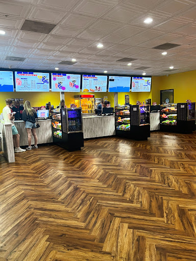 This was our first time visiting this theatre. Everyone was friendly when we walked in, the free refills were a nice touch, and the service was quick; however, everything following the first 5 minutes in the theatre was incredibly disappointing. When we got to our seats, one of them had soda or slushie spilled all over it. It was a full house, with assigned seats, so we went out and asked for a rag to clean it up. The employee (who we later learned is one of the managers) acted inconvenienced by the request, and although she eventually came and cleaned it, she was really snippy with us. 1/4 of a way through the movie, kids in the row in front of us (which was entirely full of children with only one adult to be seen) put on âwitch hatsâ and sat on their legs, stood up in the aisle, and moved around constantly. I stepped outside to let someone know because it was obstructing our view, along with others, and that the group was disruptive. The man (also a manager) said he would take care of it. A couple minutes later, we see him walk in, walk right past the kids with the hats, and leave. I tried to point to the hat when he walked by, he appeared to make eye contact with me, but he kept walking. We eventually just asked them ourselves and they temporarily took them off. Halfway through the movie, that entire row was like whack-a-mole. Standing up, running in and out of the theatre, talking loudly to each otherâŚ. Including the adult who loudly called to the children with the door wide open into the theatre⌠Numerous people in the theatre tried to âshushâ the group. The single adult did nothing. Not long after the entire row got their refills, the hats came right back on. The talking and standing up was incredibly rude and did not stop no matter how many times people asked.