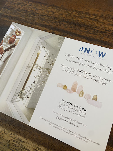 Read moreI only have positive things to say about The NOW Massage South Bay! The staff is so friendly and inviting and the owner, Lisa, is unbelievably kind!! You can tell that she pours her heart and soul into this business and she's done an incredible job finding the best therapists out there.