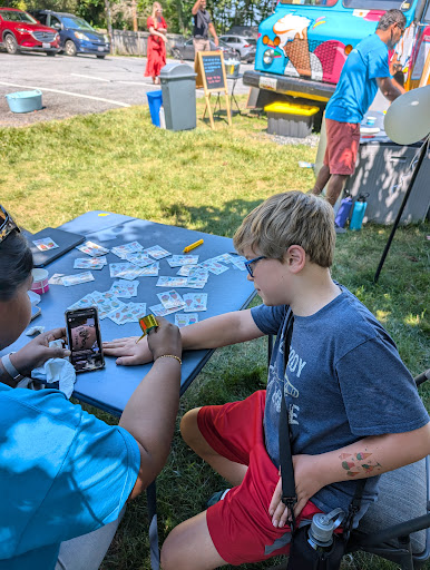 There was a tattoo station, a henna station, face painting, lawn connect four, bubbles to make the size of the moon, plenty of picnic tables, shade, sun and fun. Parking is plentiful too. We stayed a couple hours and everyone had a great time.