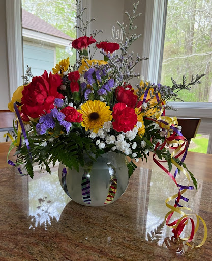 Taking these factors into consideration, I was hesitant to order flowers over the phone from another state for a same day delivery for one of my mom's best friends. When I came across the many different options for both online stores and local florists, I wasn't sure if what I imagined in my head was even a possibility. Then I came across the Teleflora's Brilliant Birthday Blooms on the Jeffrey's Greenworld & Florist, Inc., website. The flowers looked vibrant and festive with the cutest birthday themed bowl that could be used as a centerpiece or a lovely addition to any room. I loved the idea of my mom's friend having something she could use again and again for future birthday blooms. The colorful ribbons added that extra birthday touch.