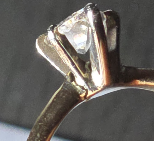After the experience I had today, I will NEVER spend my hard-earned money at a Helzberg location again. I had a family diamond set in an engagement ring that I gave to my fiancée barely three weeks ago when I proposed, and the ring was defective and cracked. You can see the damage in the pictures I’ve posted as well.