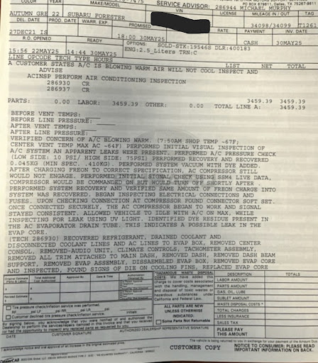 While I appreciate Subaru’s offer to cover the parts, the evaporator core is a critical, internal system component that should not require replacement on a nearly brand-new vehicle. This situation is far from routine maintenance and should be treated as a premature failure covered under goodwill.